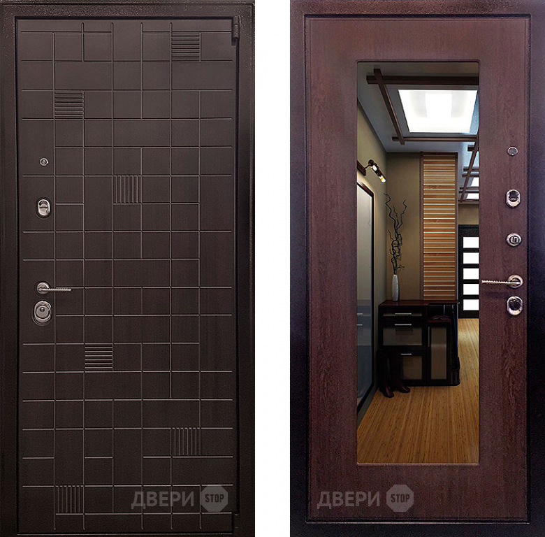 Входная металлическая Дверь Ратибор Силуэт зеркало 3К Венге капучино в Видное 860х2050 мм