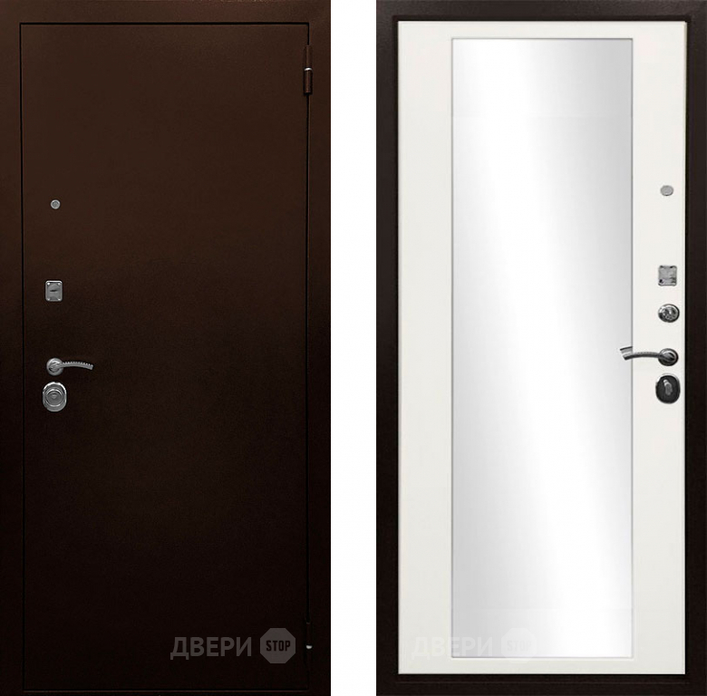 Входная металлическая Дверь Ратибор Рим 3К зеркало Белый матовый в Видное 860х2050 мм