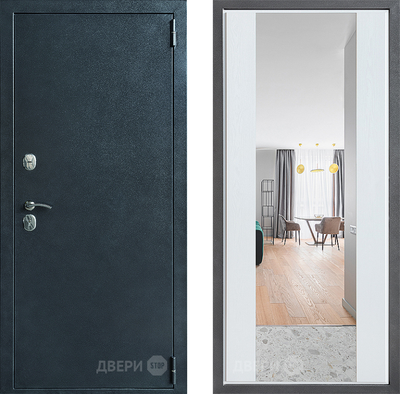 Входная Дверь Дверной континент ДК-70 Дизайн ФЛЗ-1 Зеркало Белое дерево 860x2050 мм
