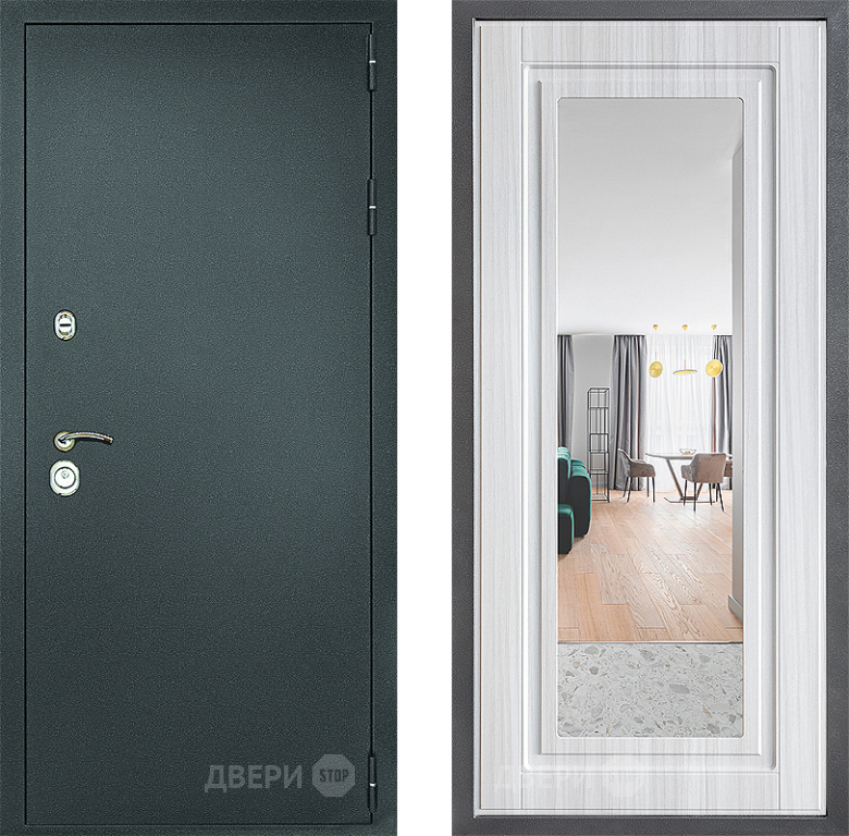 Входная Дверь Дверной континент Рубикон Серебро Дизайн ФЛЗ Зеркало Сандал белый 860x2050 мм
