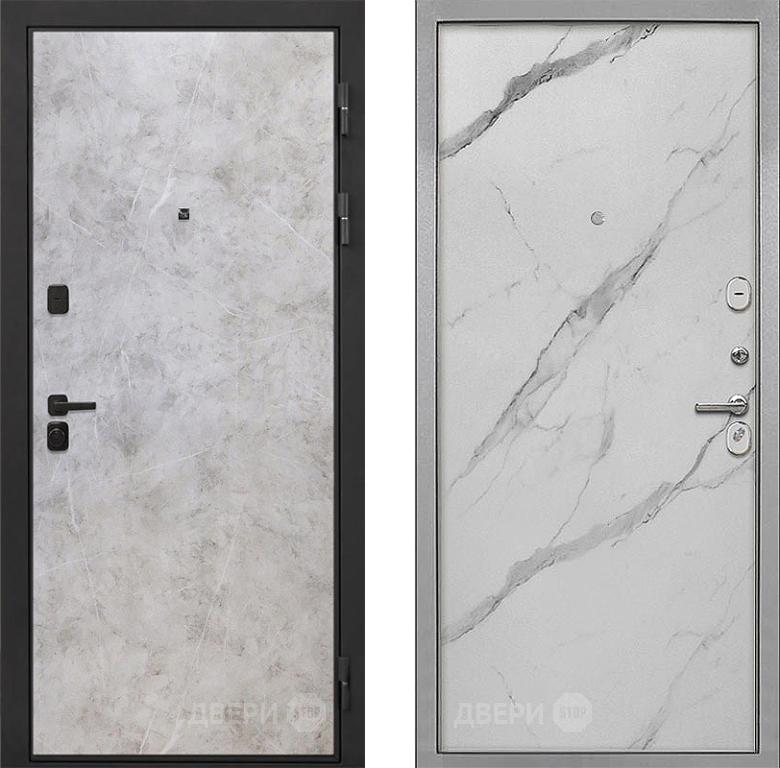 Входная Дверь Интекрон (INTECRON) Профит Black Мрамор Светлый Гладкая Мрамор натуральный арктик 860x2050 мм