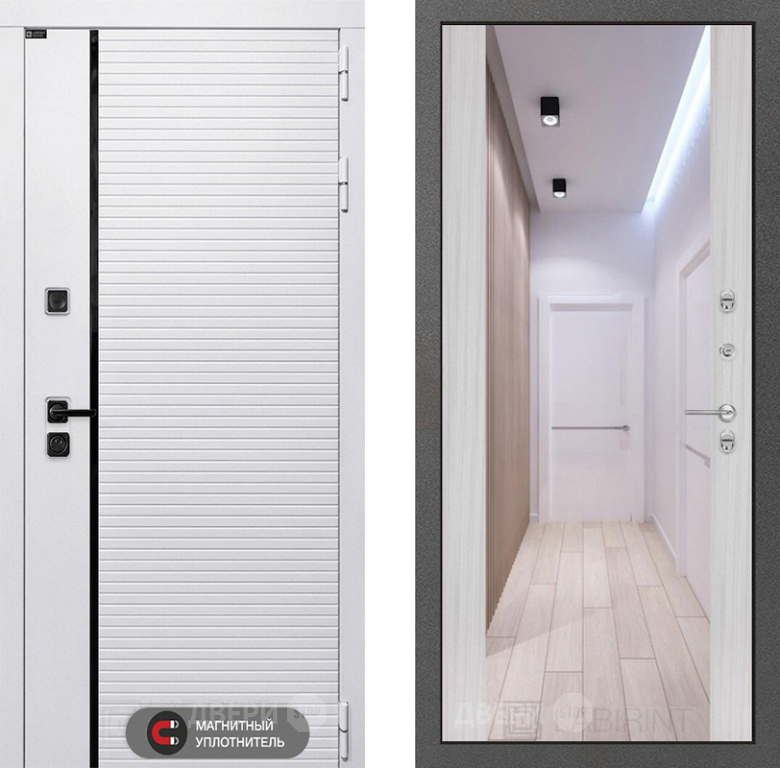 Входная Дверь Лабиринт (LABIRINT) Royal Зеркало Максимум Сандал белый 860x2050 мм