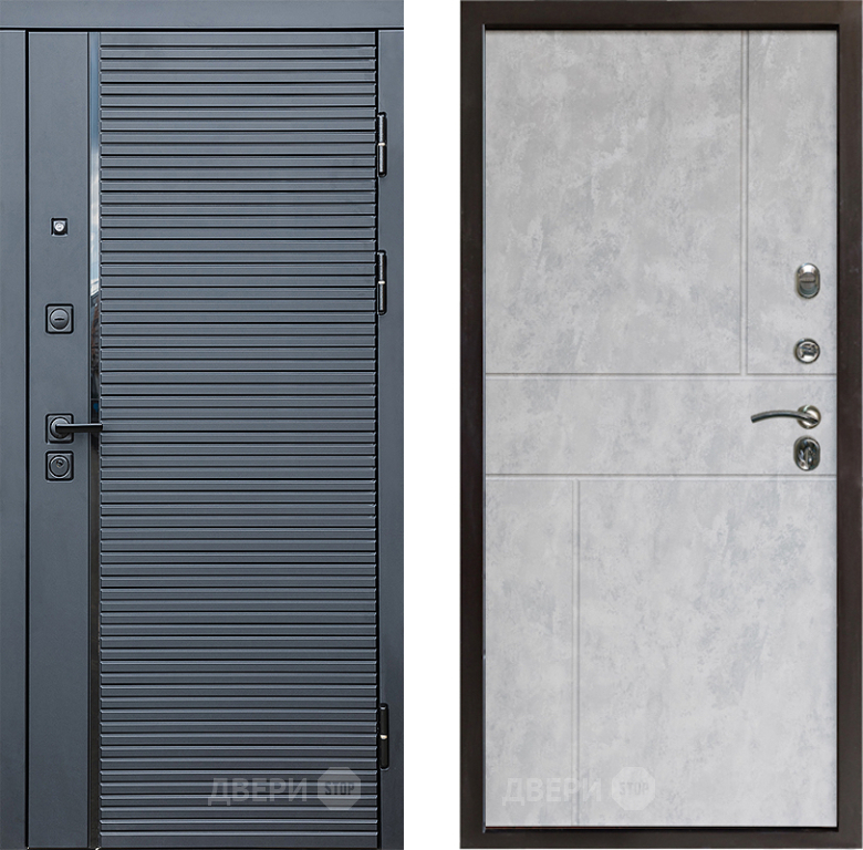 Входная Дверь Престиж Черная Линия Горизонт Бетон светлый 860x2050 мм