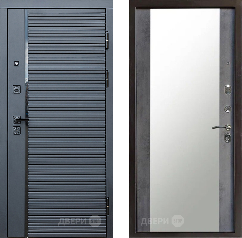 Входная Дверь Престиж Черная Линия Зеркало Бетон темный 860x2050 мм