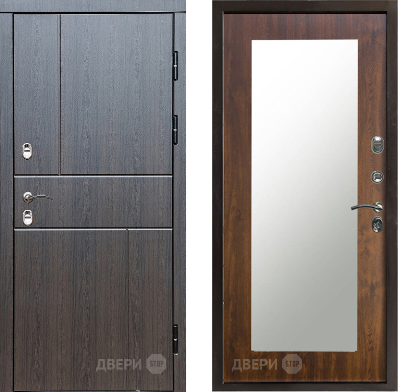 Входная Дверь Престиж TERMO с терморазрывом Горизонт Венге Зеркало пастораль Дуб 860x2050 мм