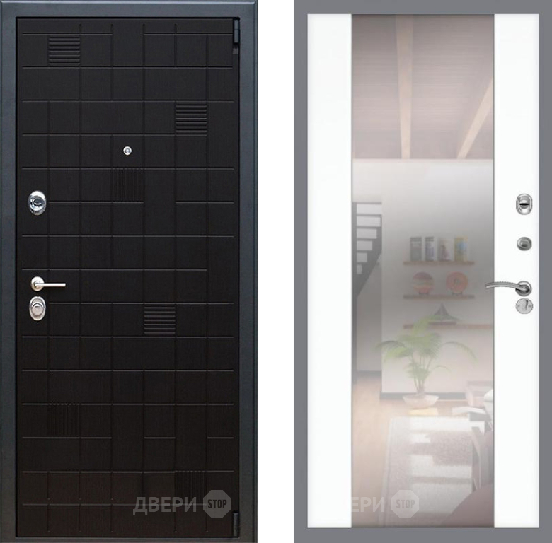 Входная Дверь Рекс (REX) 12 СБ-16 Зеркало Силк Сноу 860x2050 мм