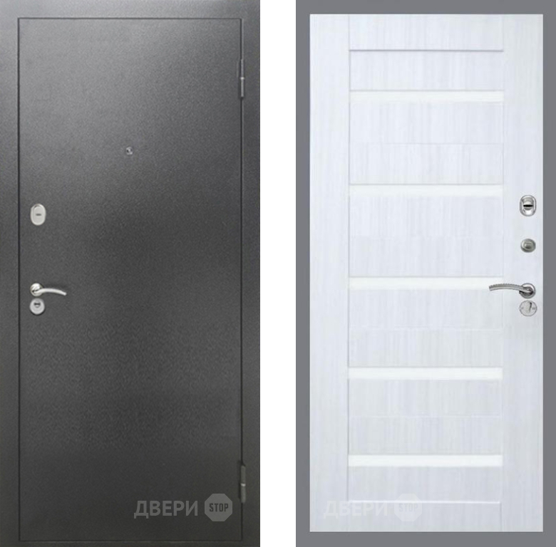Входная Дверь Рекс (REX) 2А Серебро Антик СБ-14 стекло белое Сандал белый 860x2050 мм