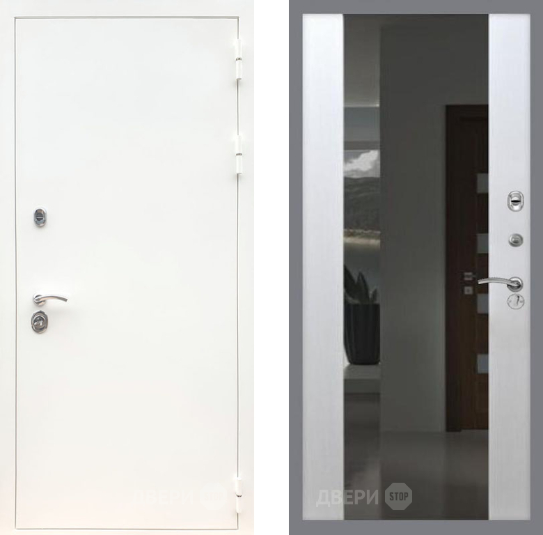 Входная Дверь Рекс (REX) 5 Белая Шагрень СБ-16 Зеркало Белый ясень 860x2050 мм