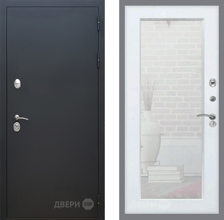 Входная Дверь Рекс (REX) 5 Черный Муар Зеркало Пастораль Силк Сноу 860x2050 мм