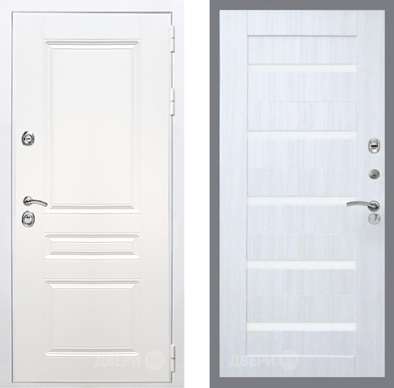 Входная Дверь Рекс (REX) Премиум-н Силк Сноу СБ-14 стекло белое Сандал белый 860x2050 мм