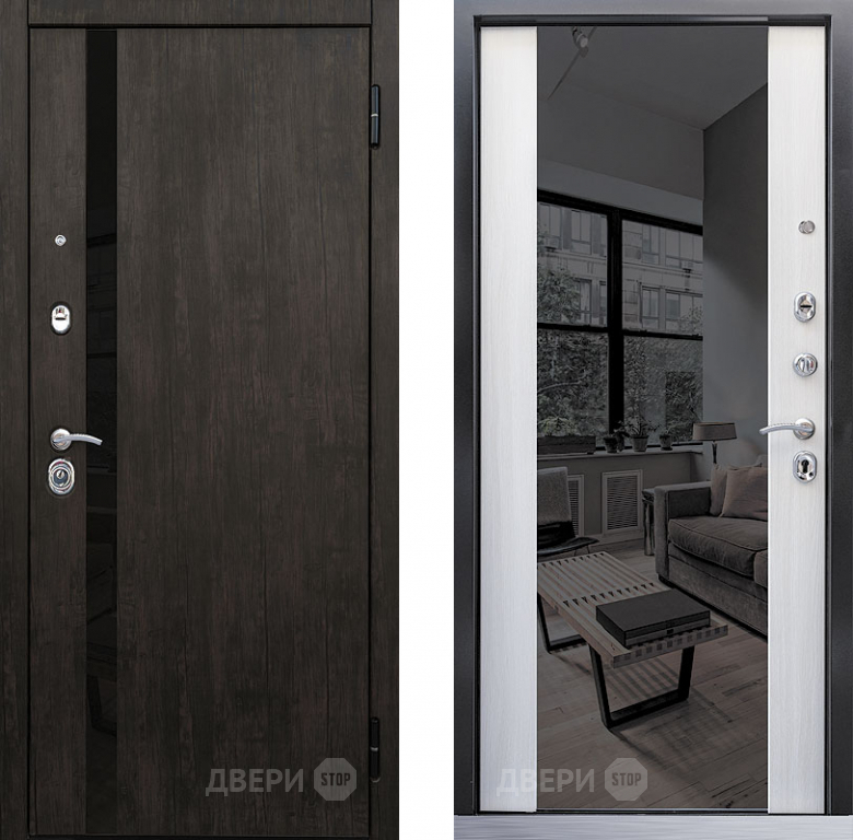 Входная металлическая Дверь Премьер зеркало тиковое дерево/лиственница белая в Видное 860х2050 мм