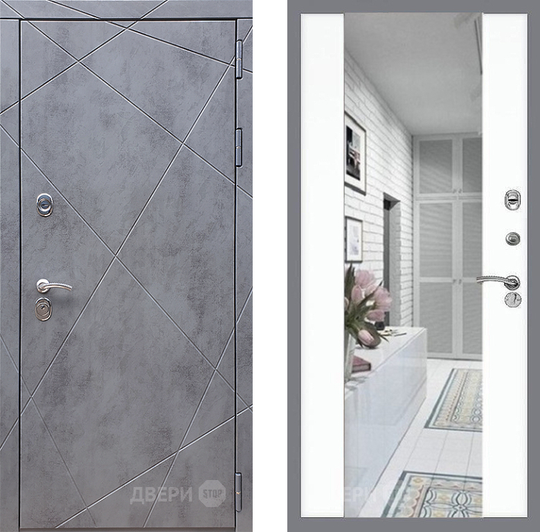 Входная Дверь Стоп Лучи Зеркало СБ-16 Силк Сноу 860x2050 мм