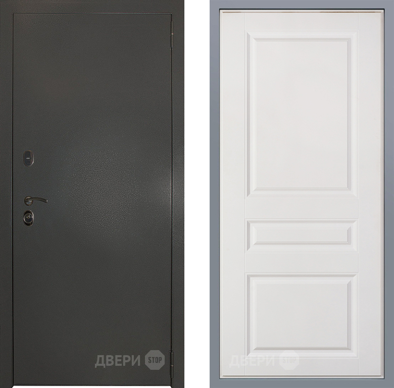 Входная Дверь Заводские двери Эталон 3к антик серебро Стокгольм Белый софт 860x2050 мм