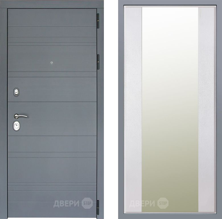 Входная Дверь Заводские двери Лира Софт графит Зеркало Макси Белый шелк 860x2050 мм